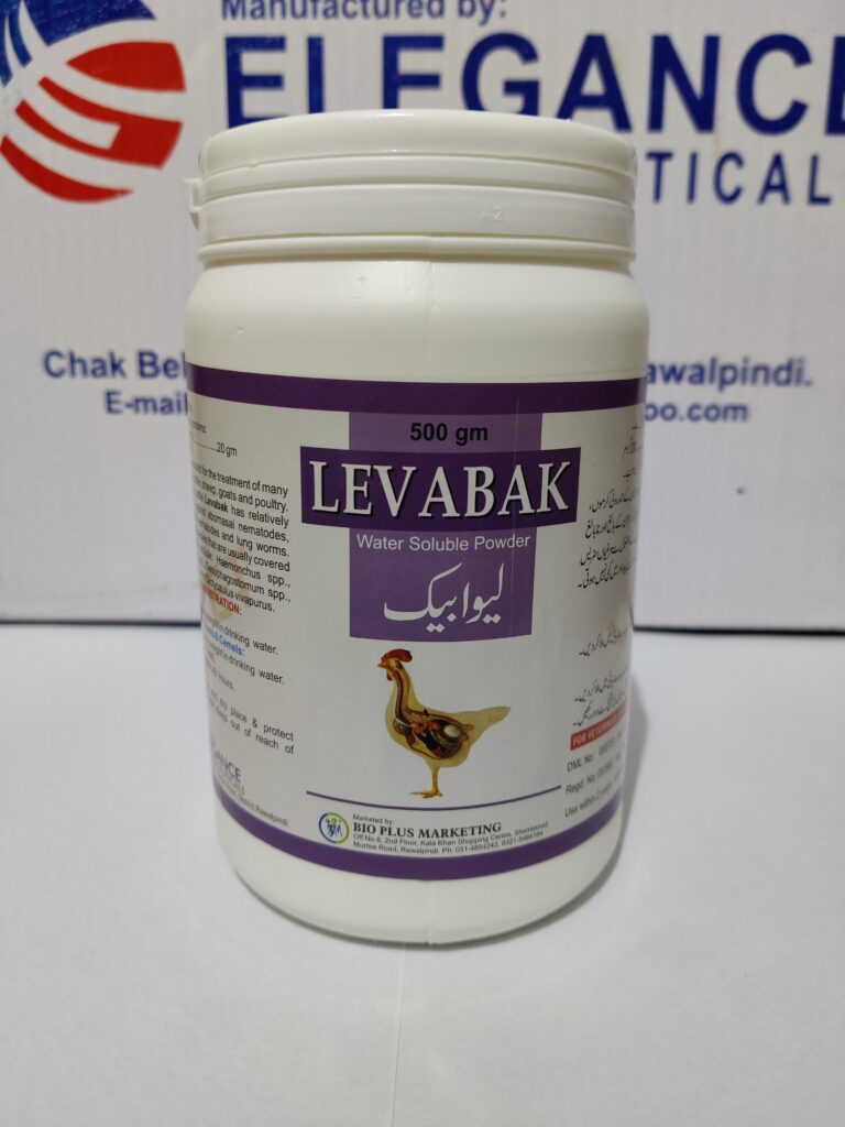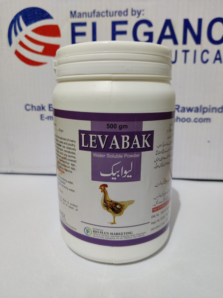 Levabak is indicated for the nematodes in cattle, sheep and poultry. Levabak has relatively good activity against abomasal nematodes, small intestinal nematodes and lung worms.